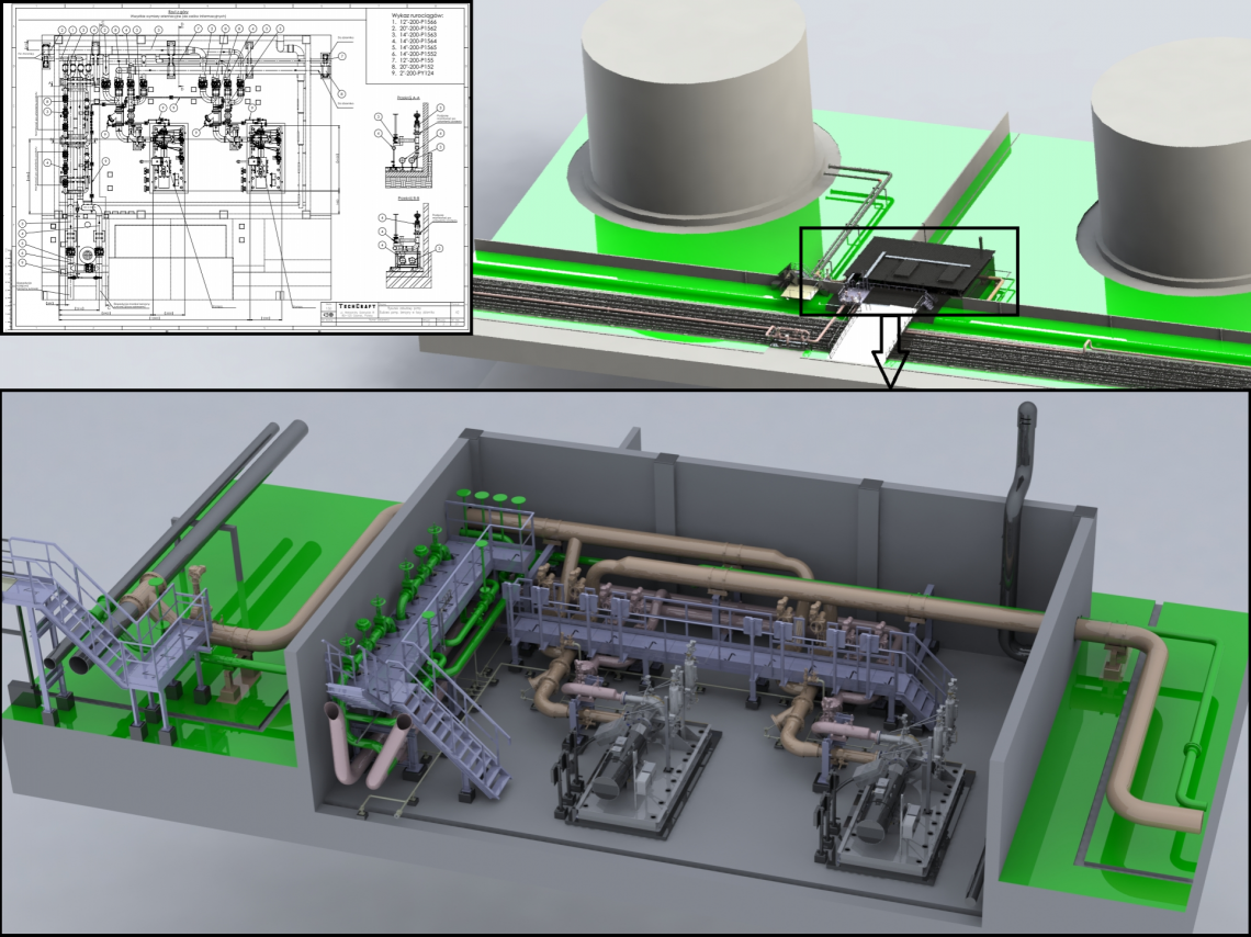 Pompownia benzyny surowej w tacy zbiornika magazynowego