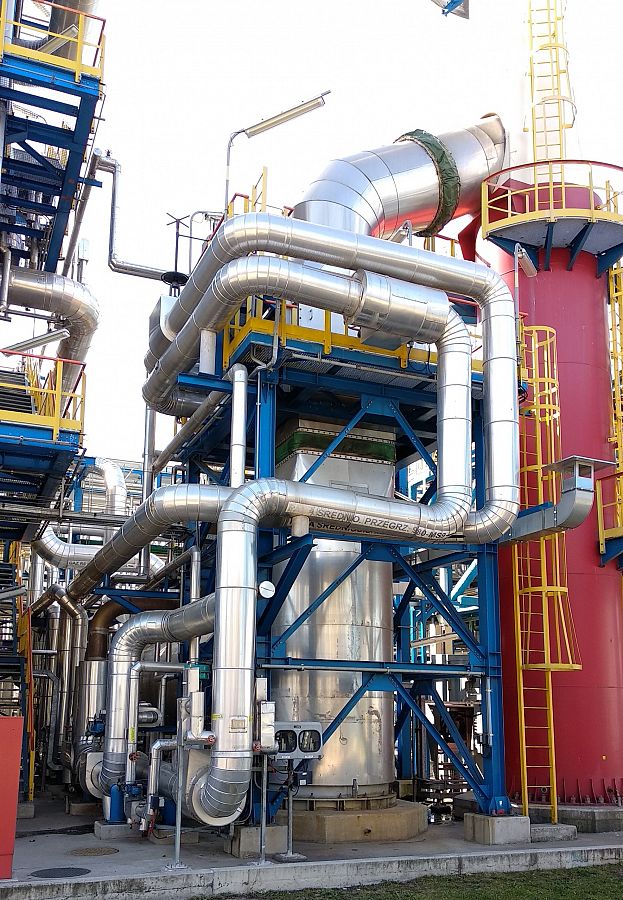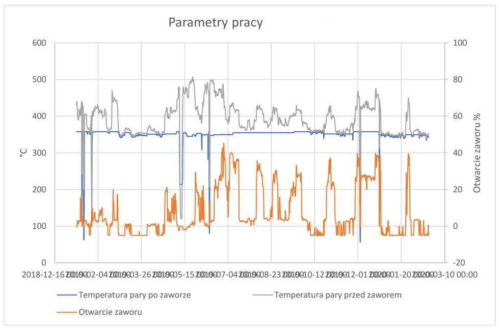 W ramach prac badawczo-rozwojowych prowadzono analizę pracy układu oraz stworzono model obliczeniowy na podstawie pomiarów geometrii pięciu rurociągów głównych oraz orurowania pomocniczego, z wykorzystaniem specjalistycznego oprogramowania. Przygotowano również model 3D istniejącej instalacji oraz schematy P&ID. Na podstawie przeprowadzonych prac możliwe było zidentyfikowanie przyczyn występujących zjawisk i opracowanie rozwiązania, które niweluje zgłaszane problemy. Analiza modelu wytrzymałościowego pozwoliła opracować nowy sposób i lokalizację podparć problematycznych rurociągów. Analiza działania instalacji doprowadziła do doboru nowego zaworu dostrzykowego wody kotłowej o parametrach dopasowanych do potrzeb instalacji. Szczegółowa inwentaryzacja oraz model 3D instalacji stanowił podstawę dla sporządzenia szczegółowej dokumentacji technicznej na podstawie której wykonano modernizację rurociągów.