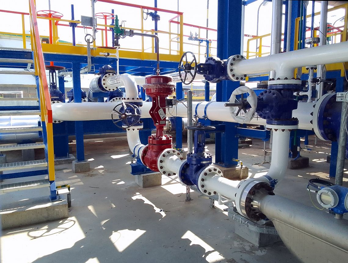 Zakres przeprowadzonych prac obejmował również wykonanie szeregu połączeń wraz z odcięciami pomiędzy istniejącymi rurociągami oraz ułożenie nowego rurociągu pomiędzy zbiornikiem magazynowym oraz pompownią.